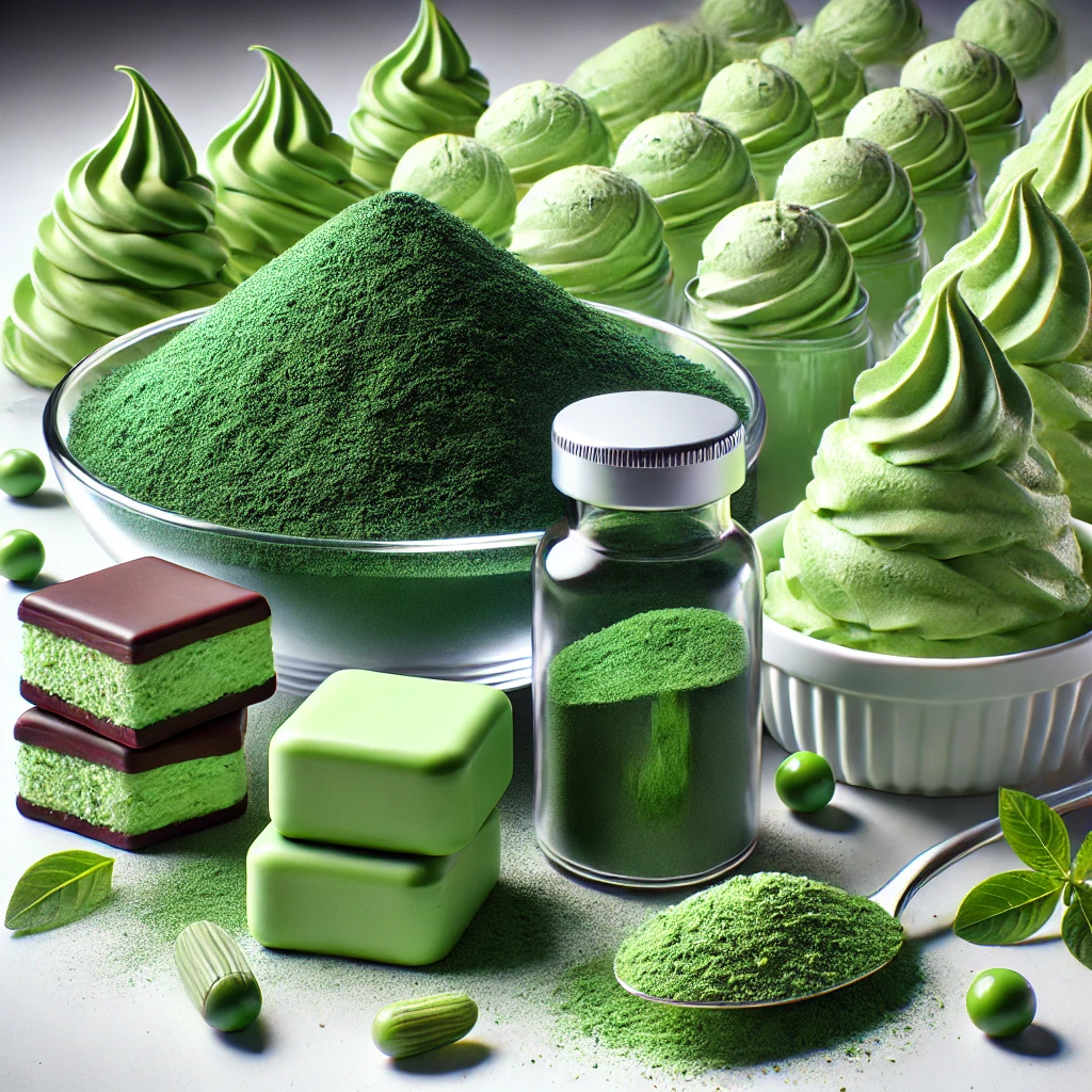 - Confitería y Repostería: Aplicada en caramelos, chicles, y pasteles para añadir un toque verde vibrante, ideal para productos que buscan destacar por su apariencia natural y saludable.