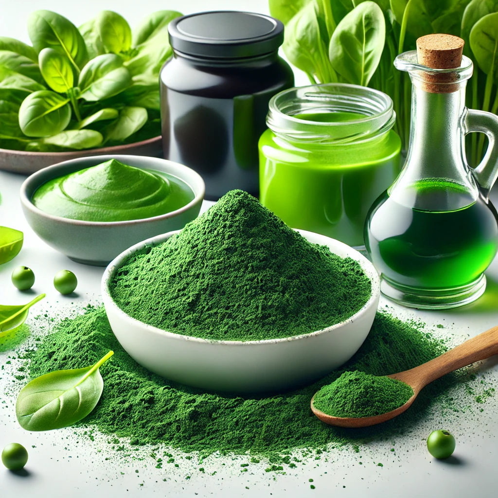 La clorofila se extrae principalmente de plantas verdes, además de su función como colorante, la clorofila es conocida por sus propiedades antioxidantes y desodorizantes, y se cree que puede ayudar a la regeneración celular y la desintoxicación del cuerpo.